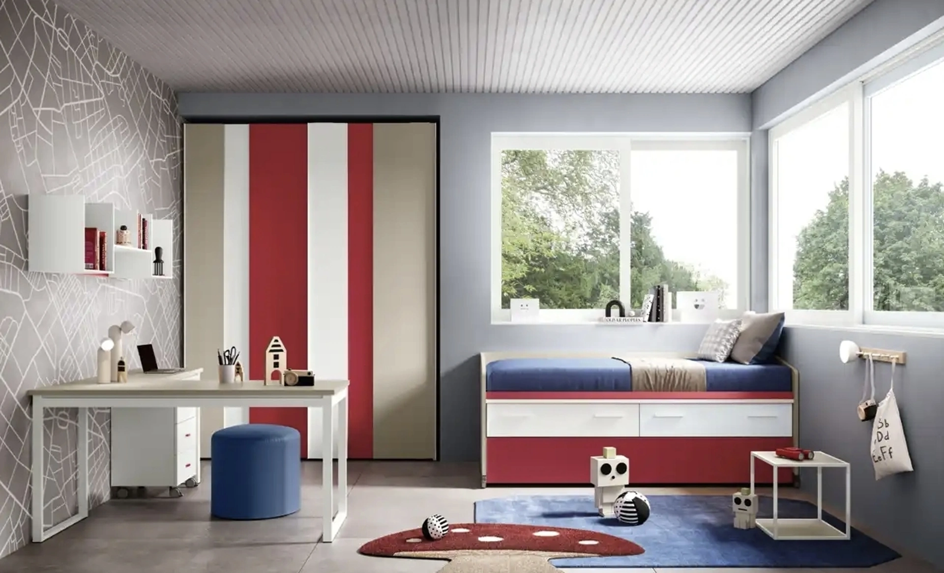 Con questa cameretta K110 Moretti Compact Camerette, tra le soluzioni componibili, potrai progettare stanze moderne per bambini.