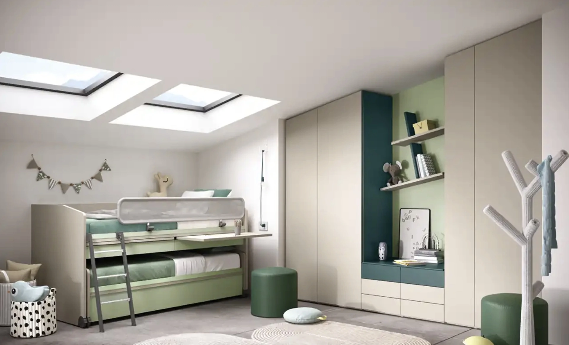Arreda stanzette moderne con le Camerette con letti scorrevoli Moretti Compact Camerette! Il modello K124 in melaminico è per bambini.