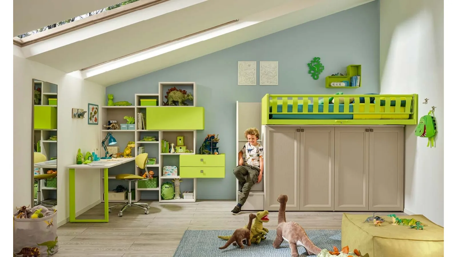 Camerette a soppalco per bambini: scopri il modello in laccato opaco KC512 di Moretti Compact per stanzette moderne.