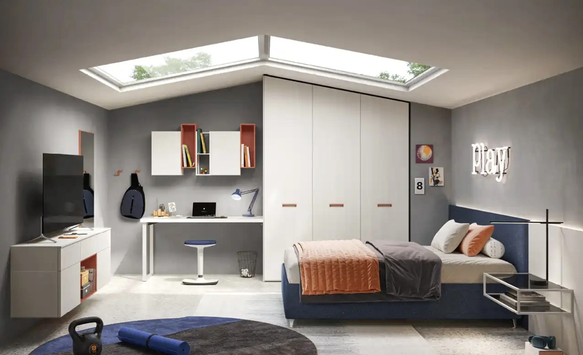 Con questa cameretta Y122 Moretti Compact Camerette, tra le soluzioni su misura, potrai ammobiliare stanze moderne per ragazzi.