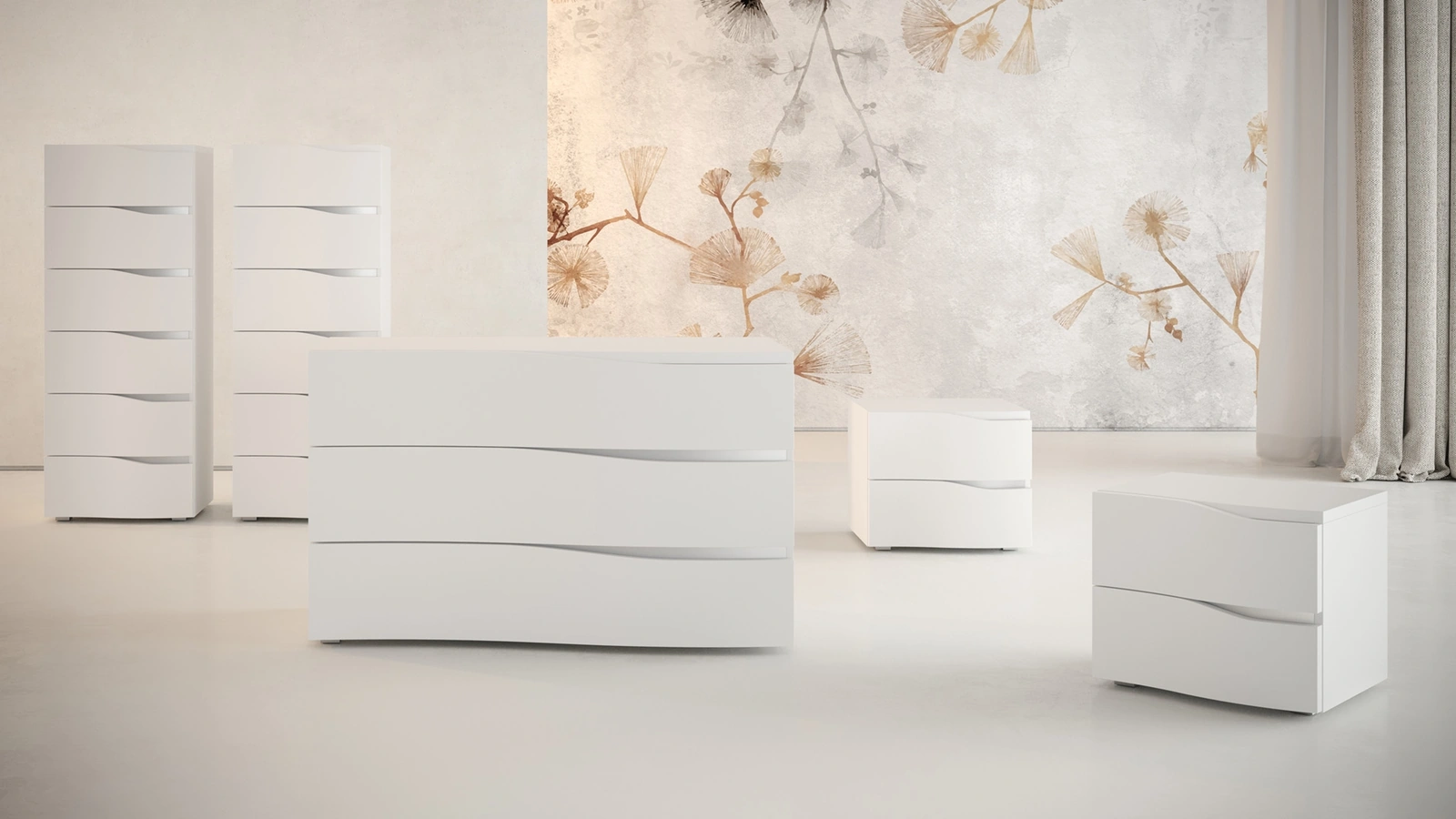 Con i nostri gruppi notte moderni della marca Giessegi, leader dell’Arredamento Casa per la camera da letto, potrai creare la camera che hai sempre voluto. Ottimizza i tuoi locali scegliendo composizioni di elementi coordinati o crea esteticamente gradevoli abbinamenti di stile e tonalità con il catalogo di mobili ed elementi accessori per la camera da letto che proponiamo, come il modello in laccato opaco visibile in foto, anche realizzabili su misura per te. Gruppo Notte Damasco di Giessegi: contattaci e scopri di più sulle nostre soluzioni arredative e arreda la camera come l'avevi sognata.