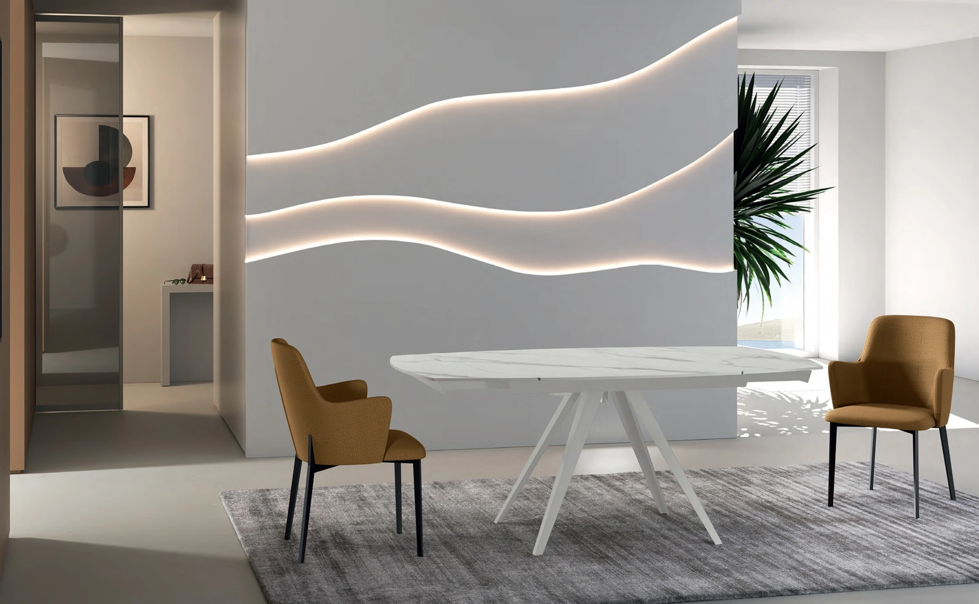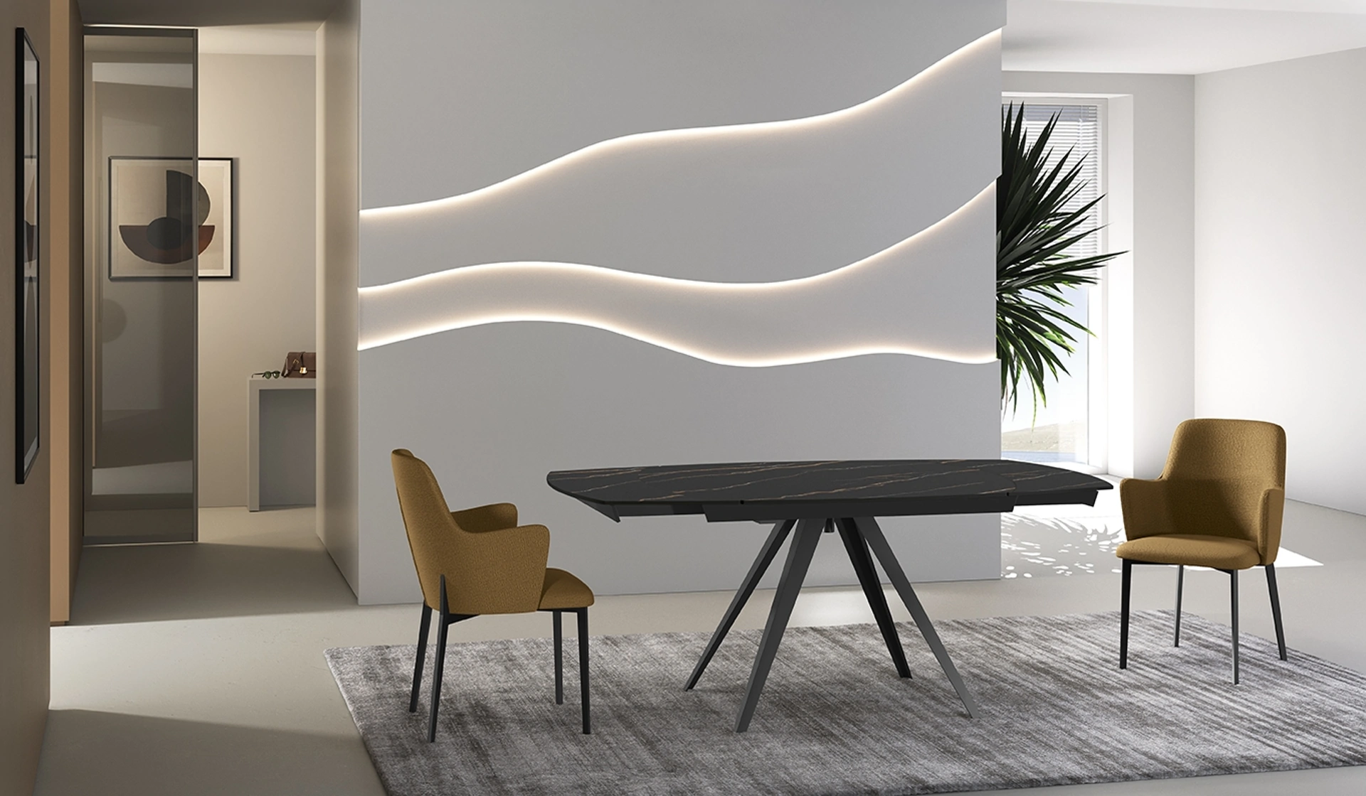 In showroom ti attende un ricco catalogo di Tavoli allungabili dei migliori brand, tra cui anche il modello da pranzo presente in foto. Nel nostro sito dedicato all'Arredamento Casa troverai tutto ciò di cui necessiti per il living o la zona cucina. Opta per i mobili e oggetti accessori in ceramica dei migliori brand per completare con funzionalità i tuoi interni senza mai sacrificare il valore estetico. Durante la scelta del tavolo perfetto per te bisogna valutare misure, forme, materiali e stile, per organizzare al meglio lo spazio con un'ottima estetica.