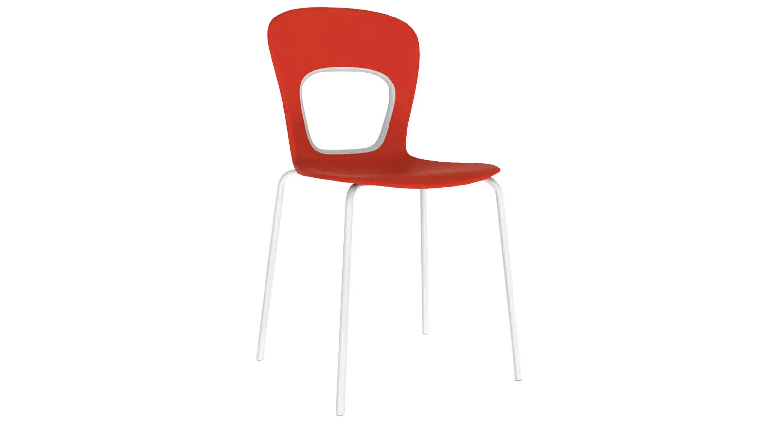 Sedia con Struttura in metallo verniciato Bianco e Seduta in tecnopolimero. Sedia con Struttura in metallo cromato e Seduta in tecnopolimero.
