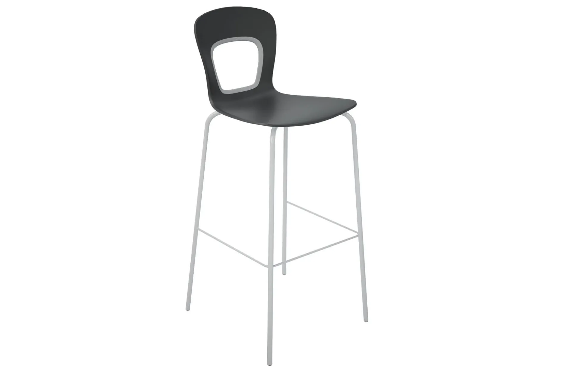 Sgabello con Struttura in metallo verniciato Bianco e Seduta in tecnopolimero. Sgabello con Struttura in metallo cromato e Seduta in tecnopolimero.